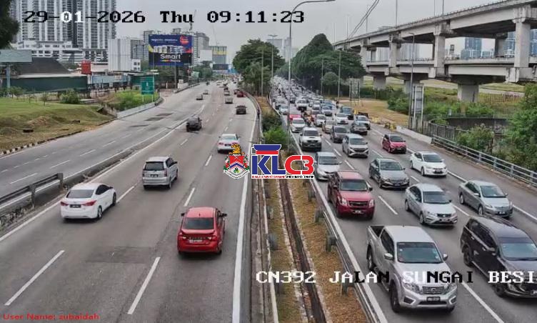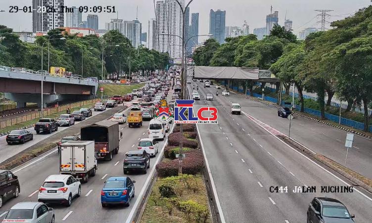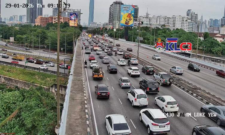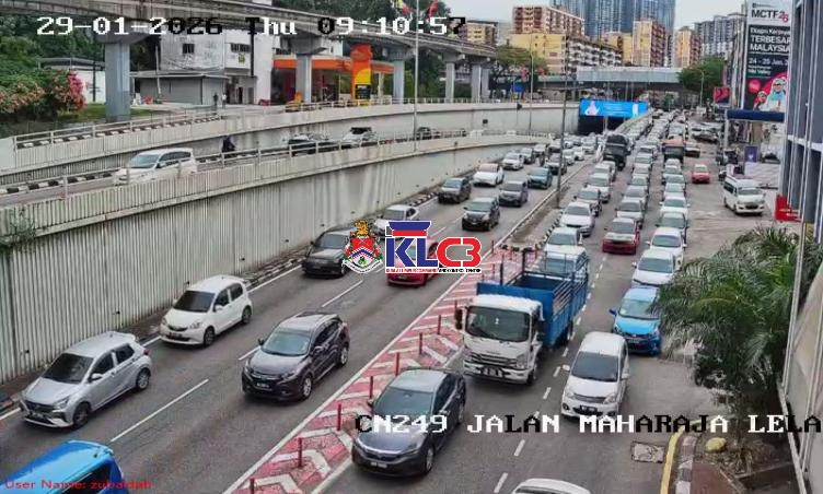 Aliran trafik tinggi di beberapa lokasi sekitar Pusat Bandar, cuaca baik.