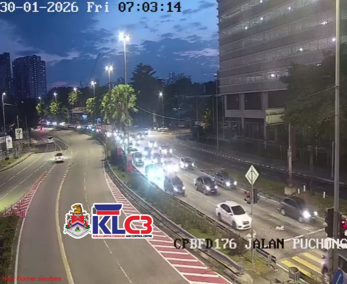 Aliran trafik perlahan, cuaca baik sekitar Pusat Bandar