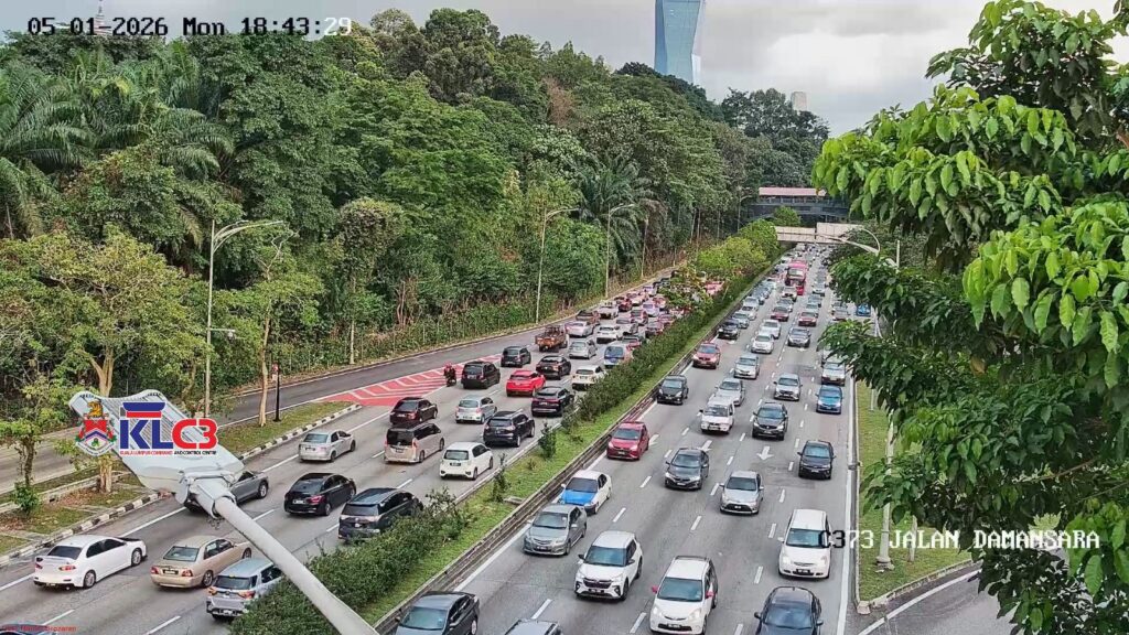 Aliran trafik tinggi di Jalan Damansara ke arah Jalan Sungai Besi/Lebuhraya Sultan Iskandar.