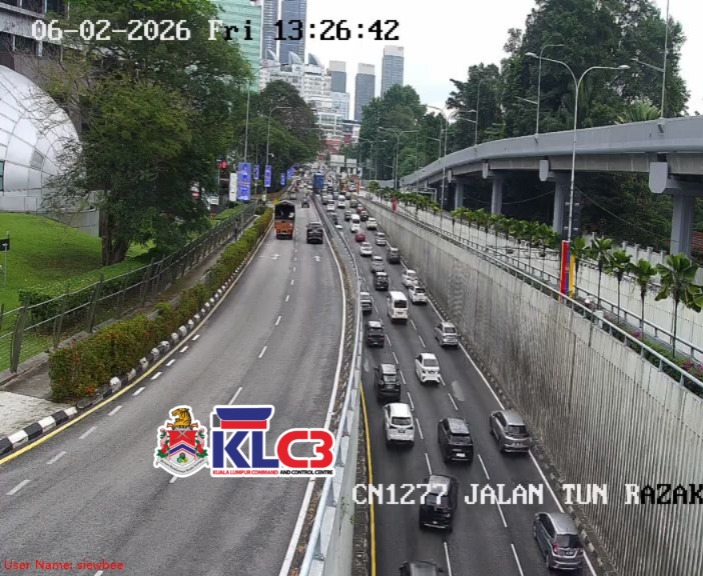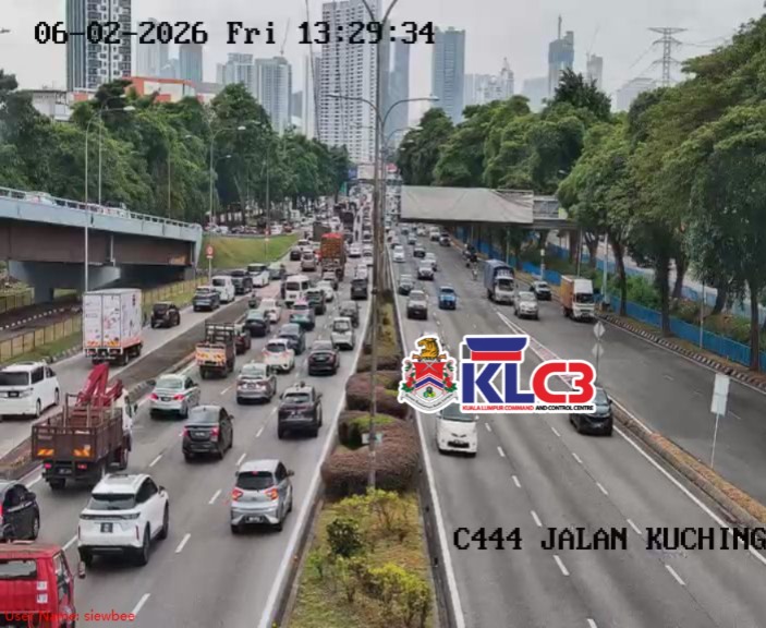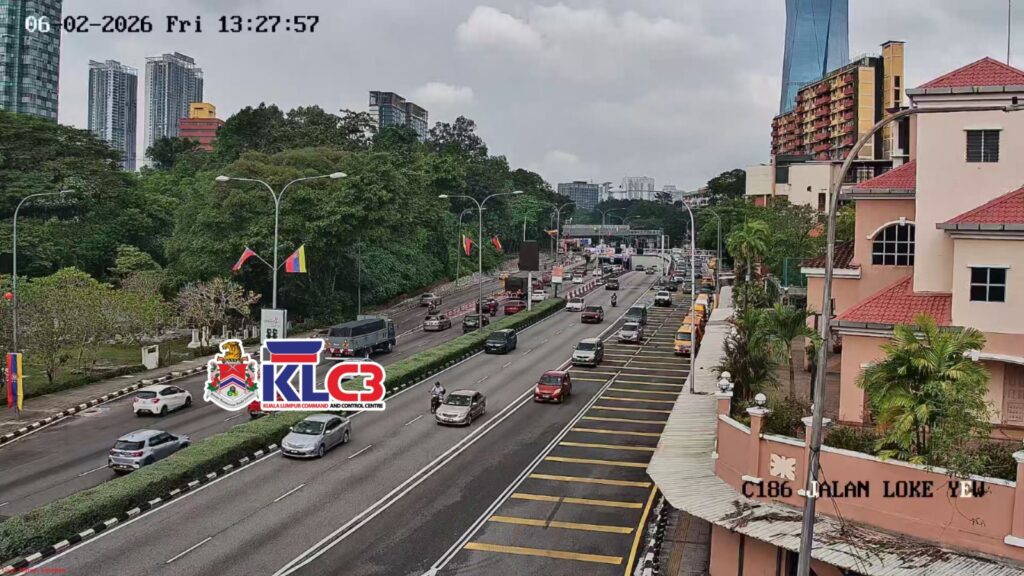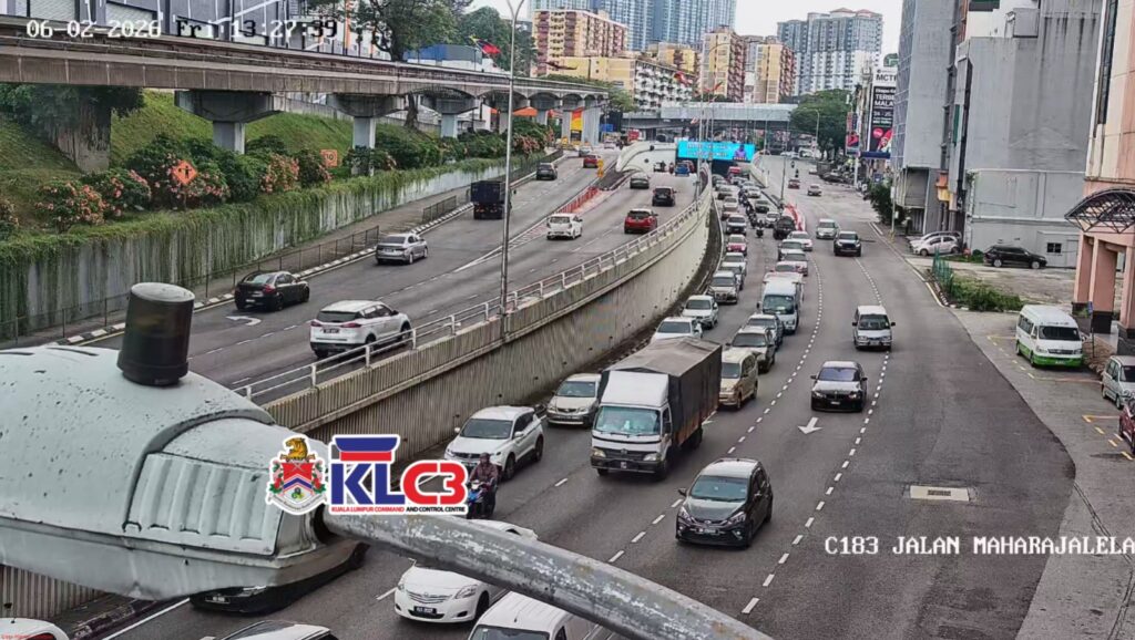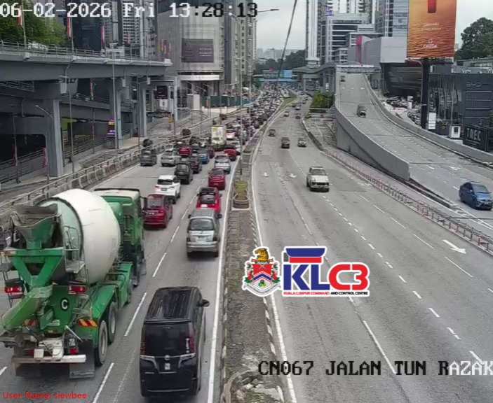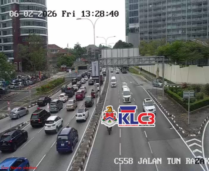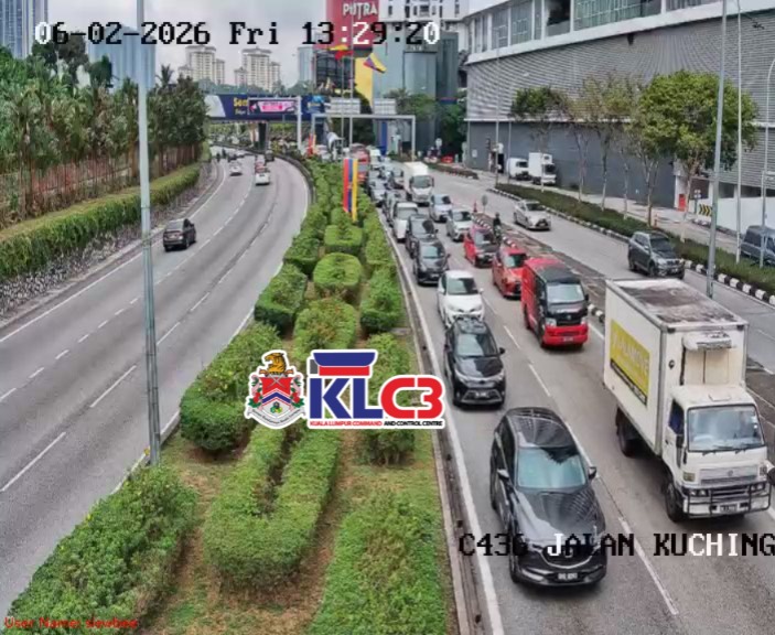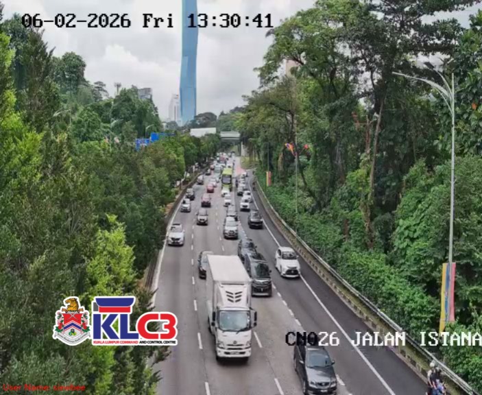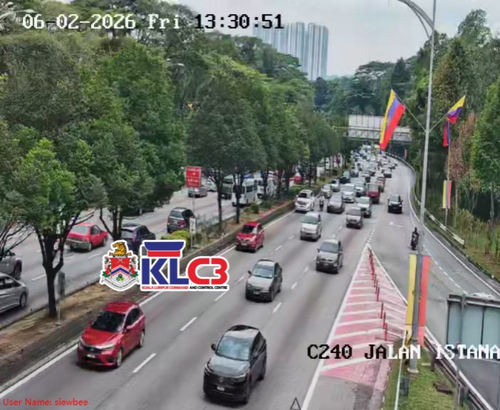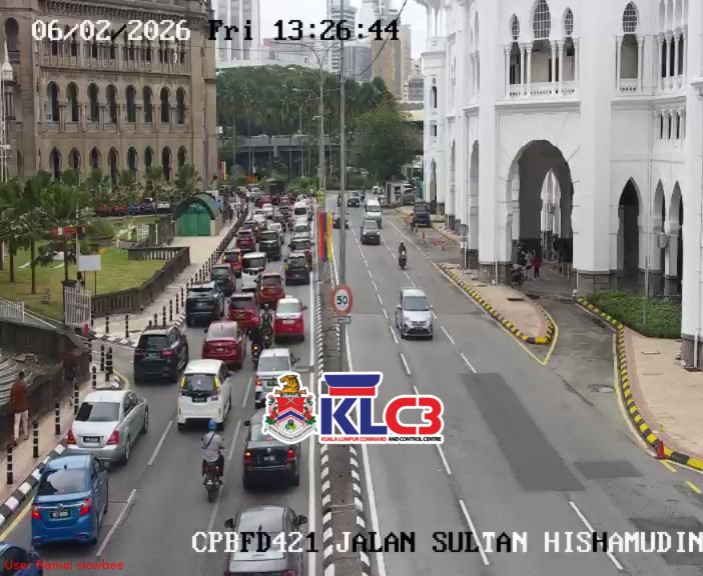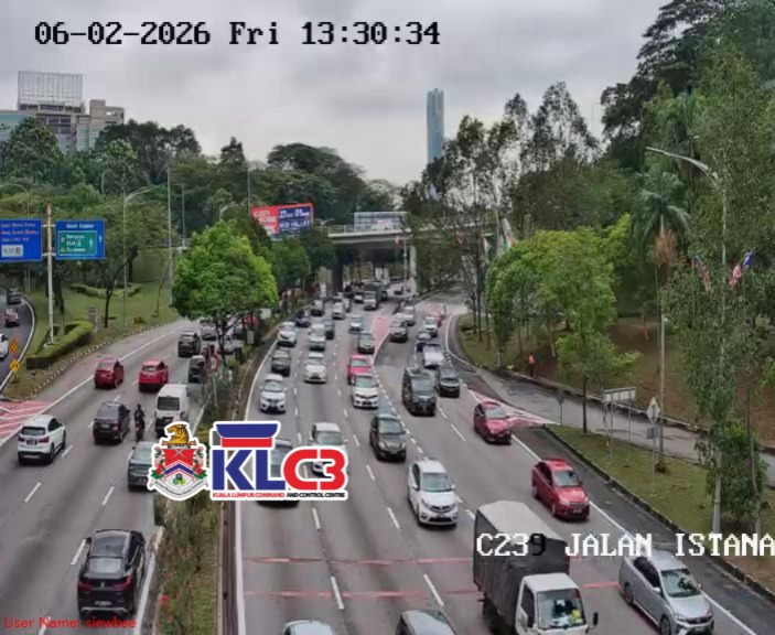 Aliran trafik tinggi, cuaca mendung dan hujan gerimis di beberapa lokasi sekitar Pusat Bandar.