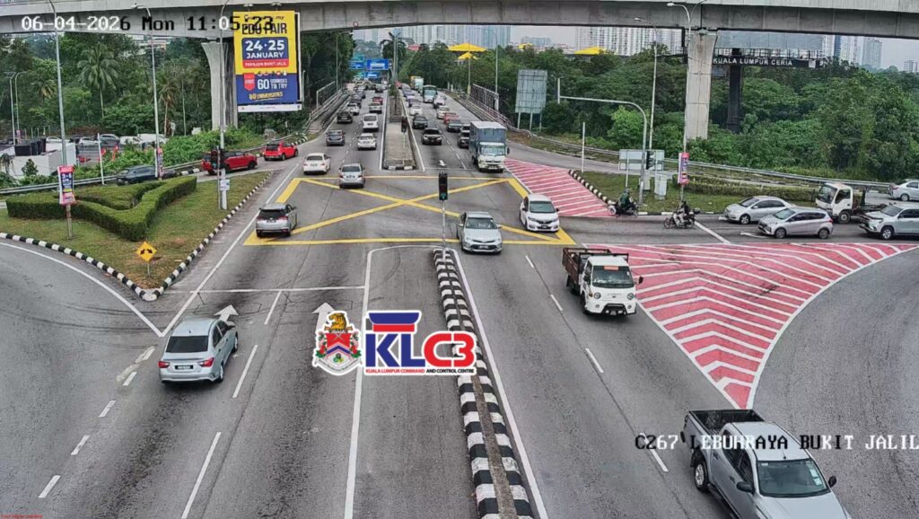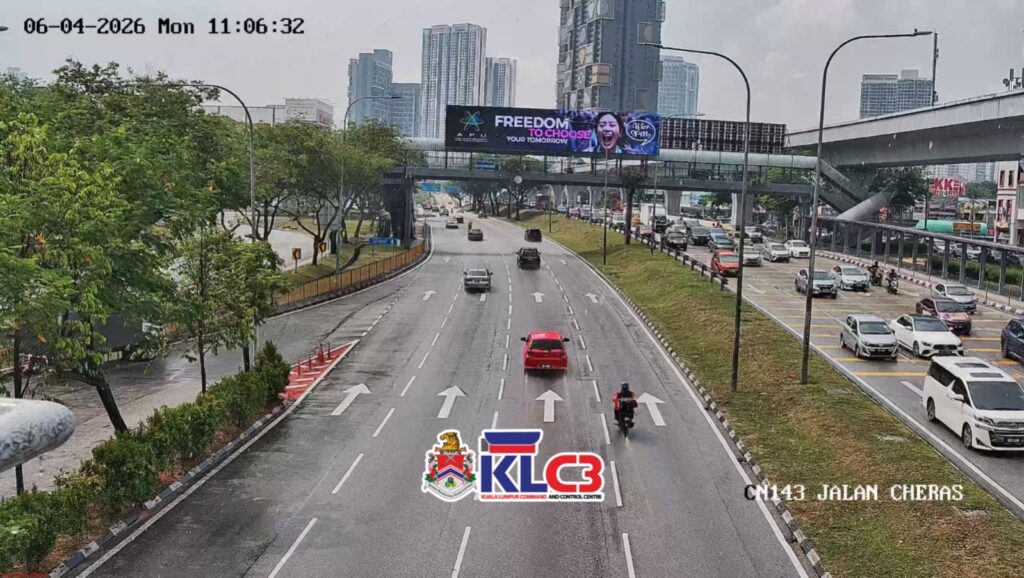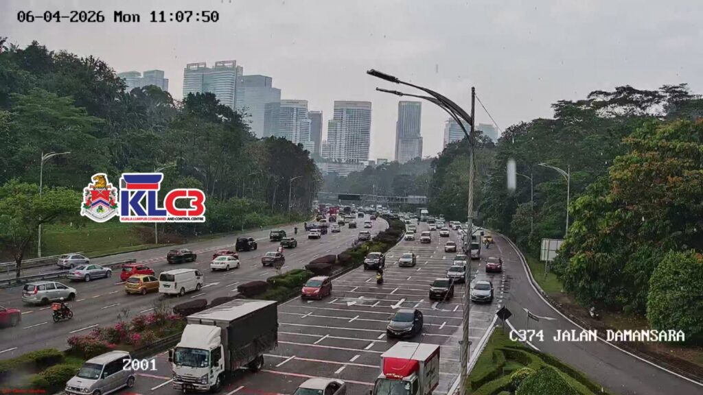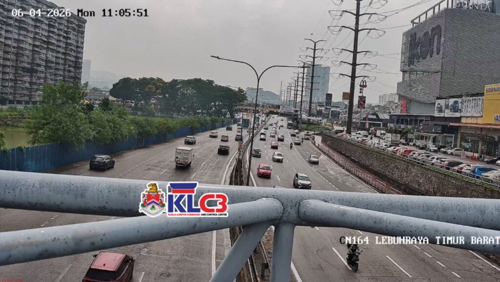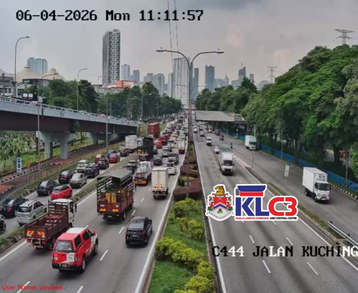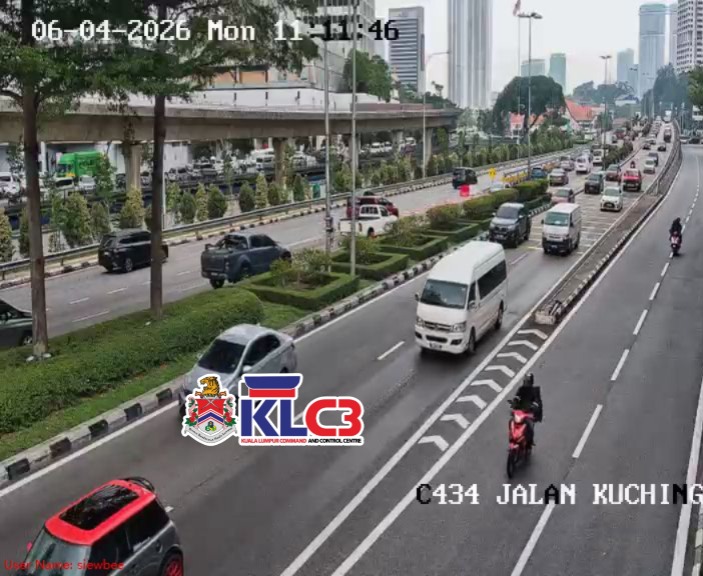 Aliran trafik perlahan, cuaca mendung dan hujan di beberapa lokasi sekitar Pusat Bandar