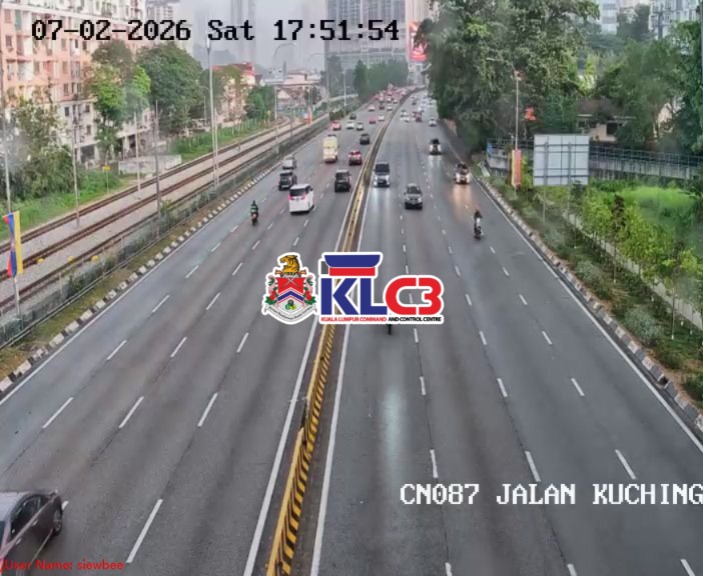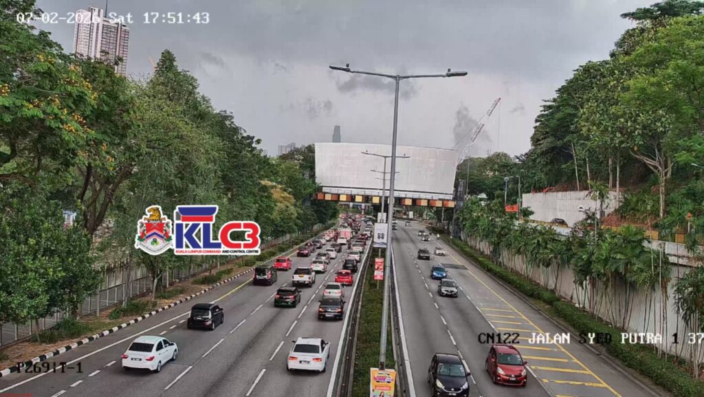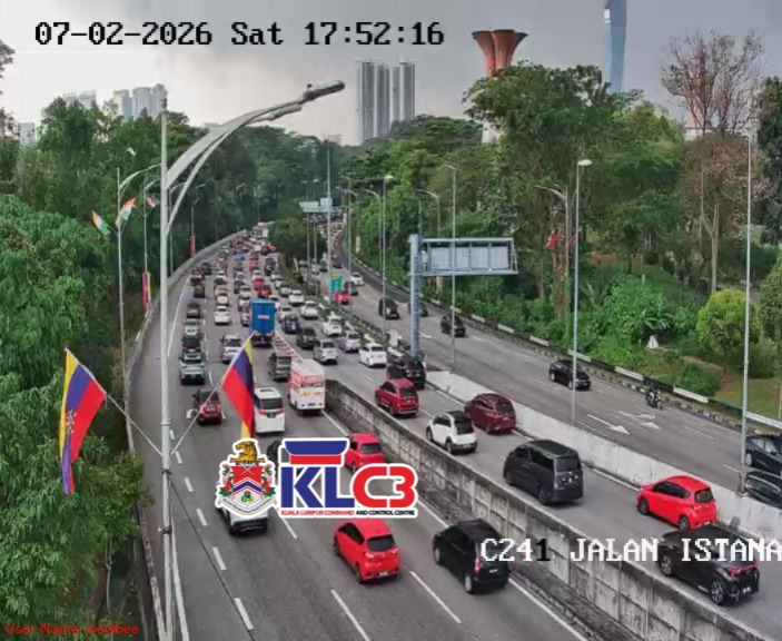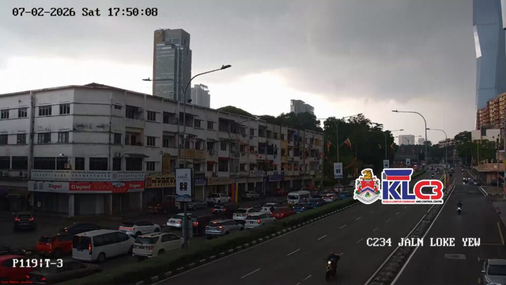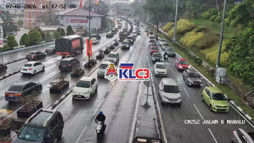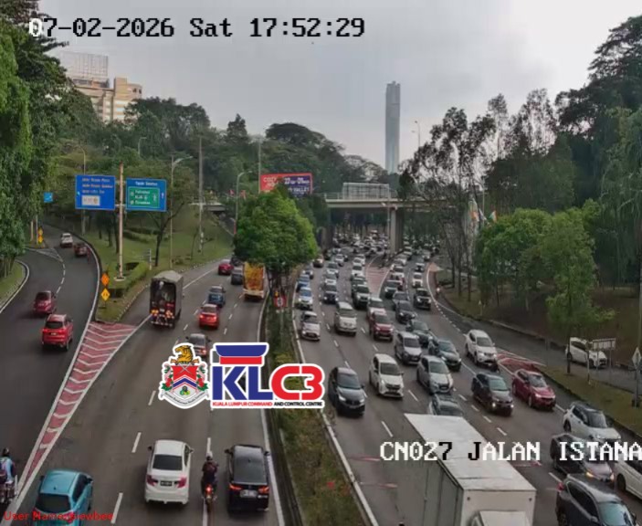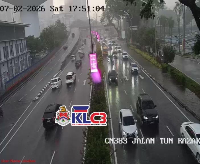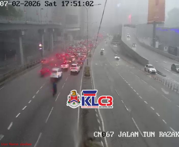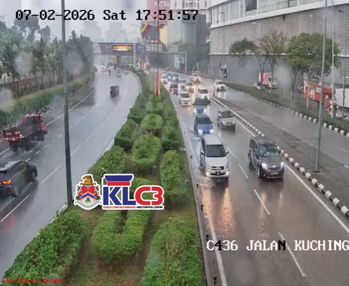 Aliran trafik tinggi, cuaca mendung dan hujan sekitar Pusat Bandar