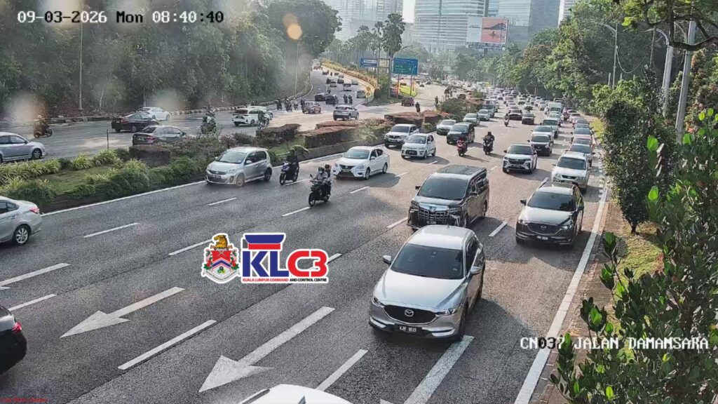 Aliran trafik tinggi, cuaca baik sekitar Pusat Bandar
