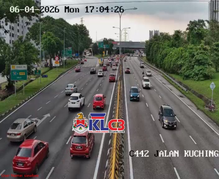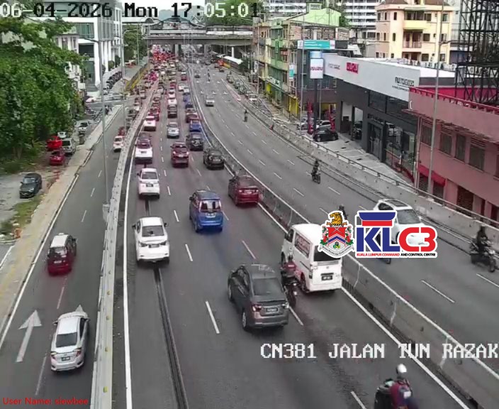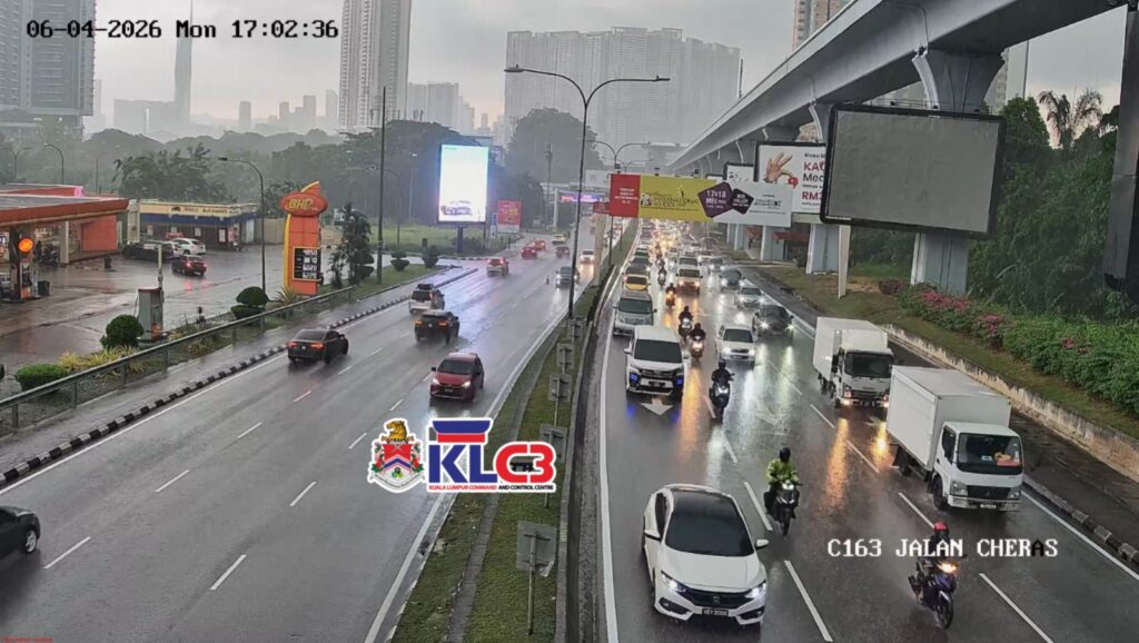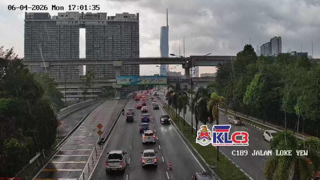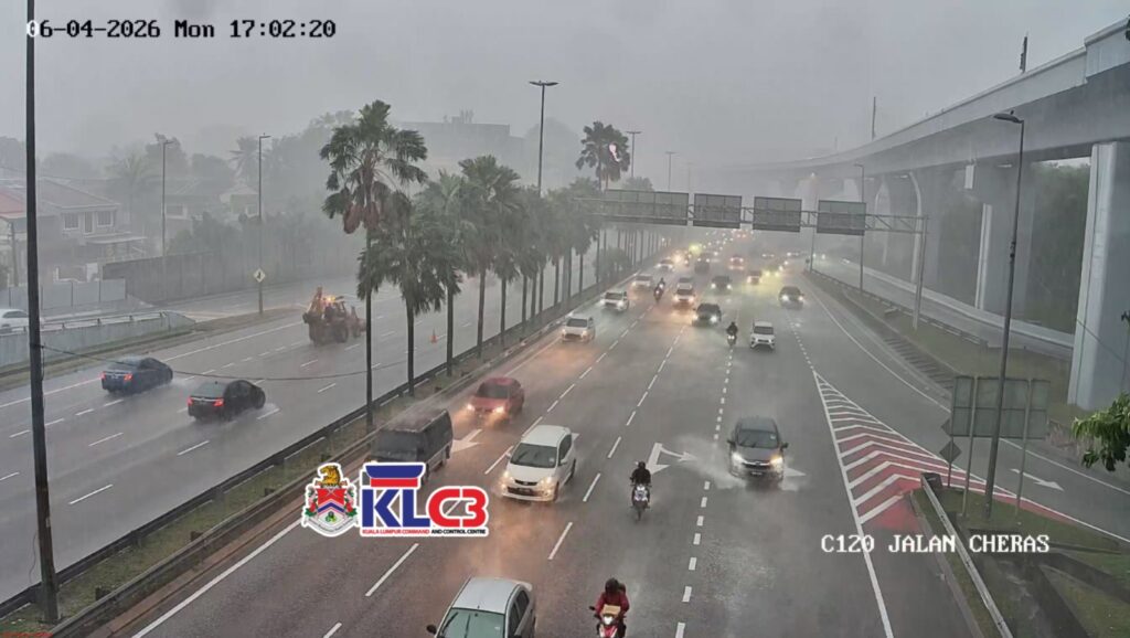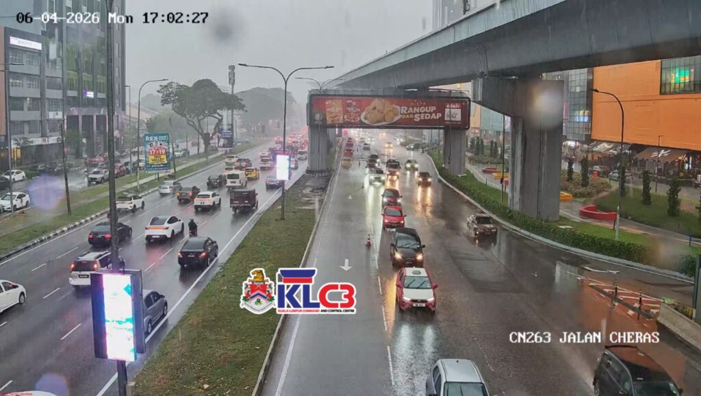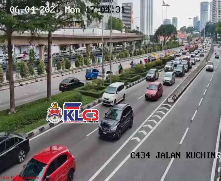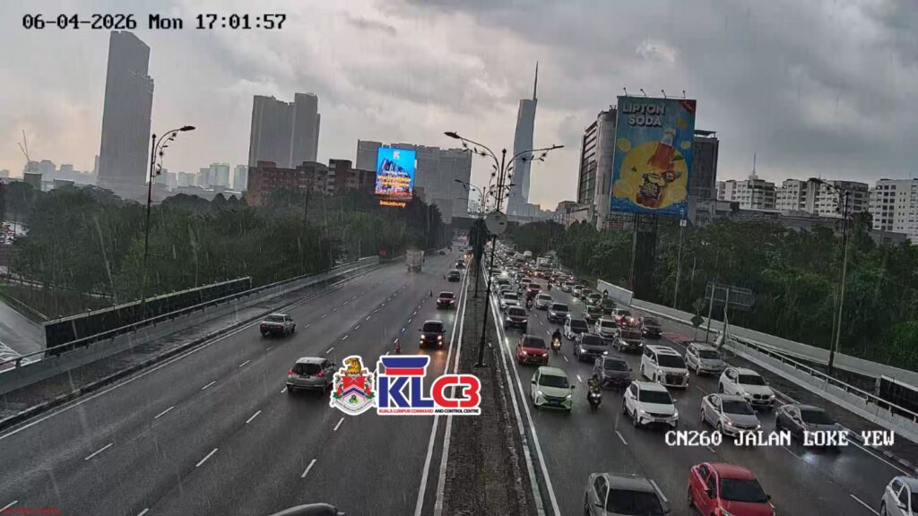 Aliran trafik tinggi, cuaca mendung dan hujan sekitar Pusat Bandar.