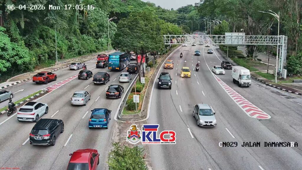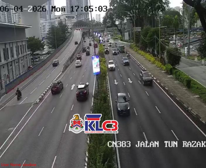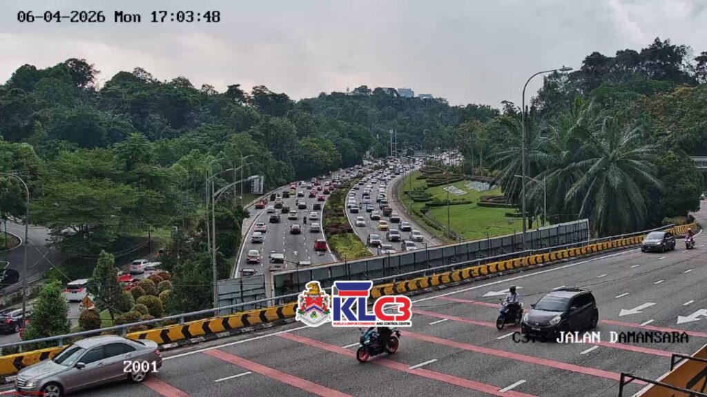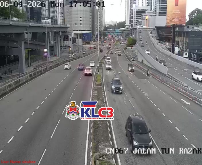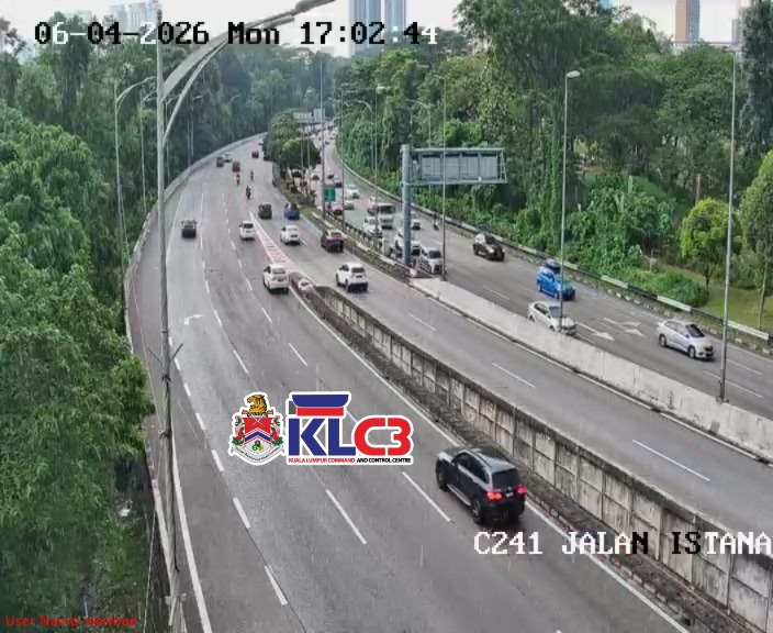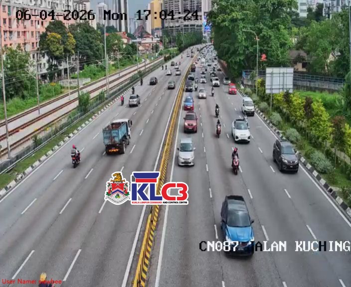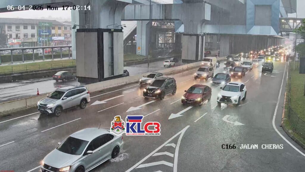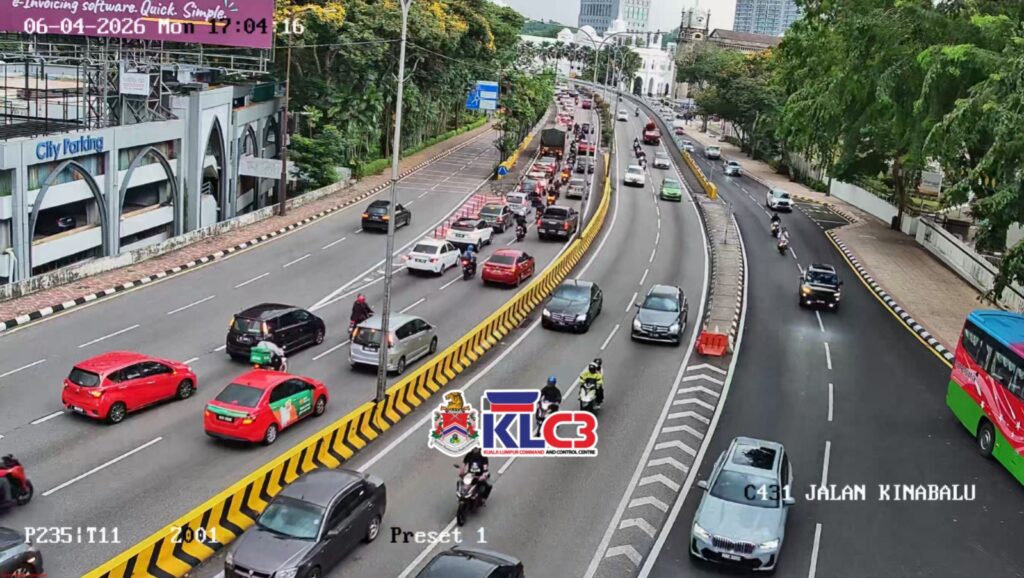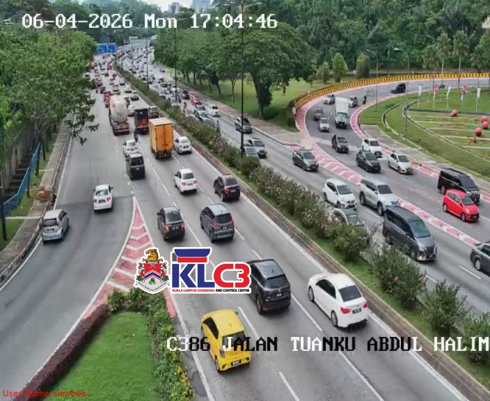 Aliran trafik tinggi, cuaca mendung dan hujan sekitar Pusat Bandar.
