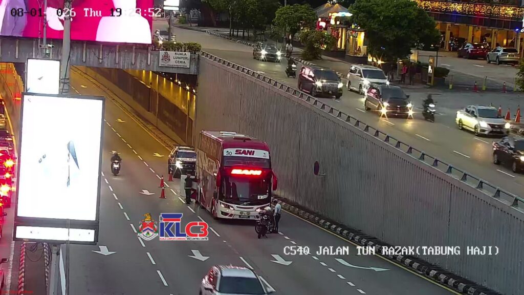 Terdapat sebuah bas rosak dilokasi selepas Terowong Tabung Haji menghala ke Bulatan Kampung Pandan, lorong kiri terhalang, Ranger KLC3 01 dan Polis Trafik dilokasi