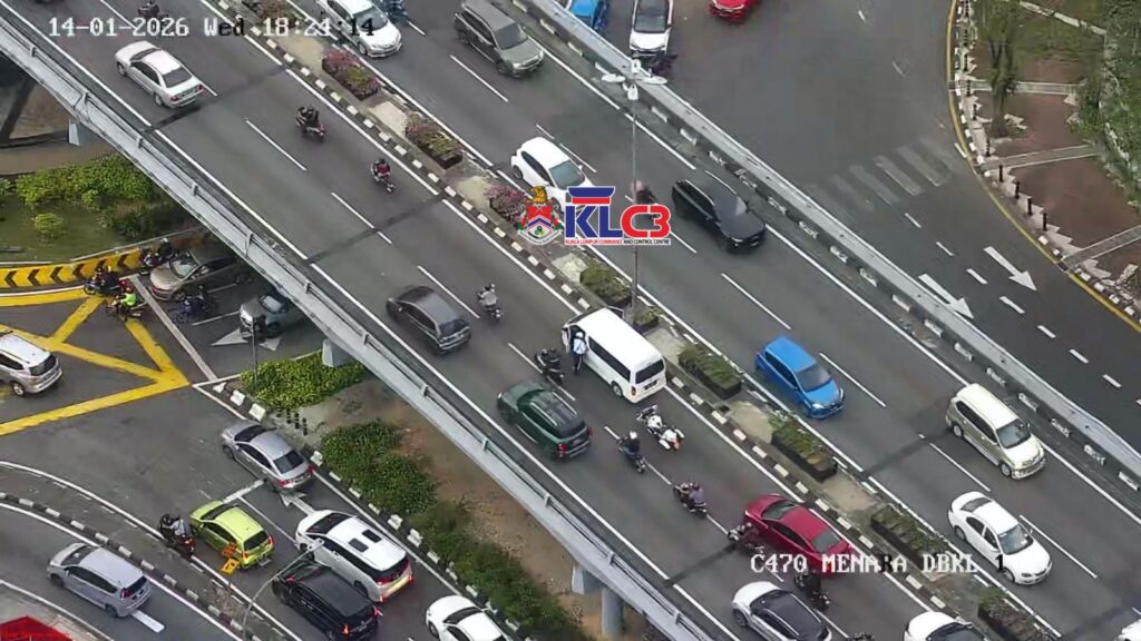 Terdapat sebuah kenderaan rosak dilokasi atas Bulatan Dato Onn menghala ke Masjid Negara, lorong kanan terhalang, aliran trafik perlahan dilokasi, Polis Trafik dilokasi.