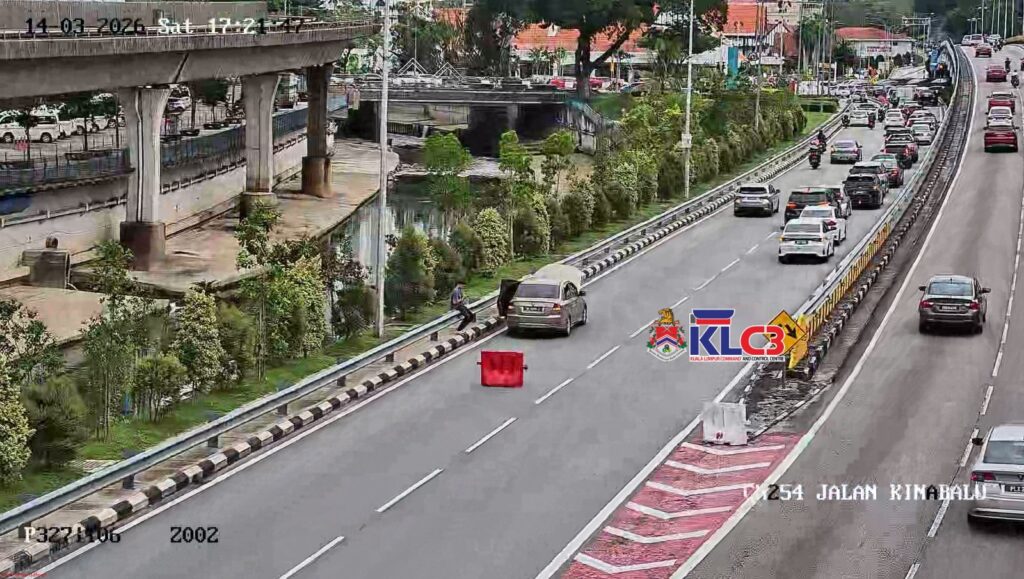 Sebuah kenderaan rosak di lokasi susur ke Bulatan Dato Onn dari arah Jalan Kuching, lorong kiri terhalang, aliran trafik perlahan di lokasi, Ranger KLC3 01 menghala ke lokasi