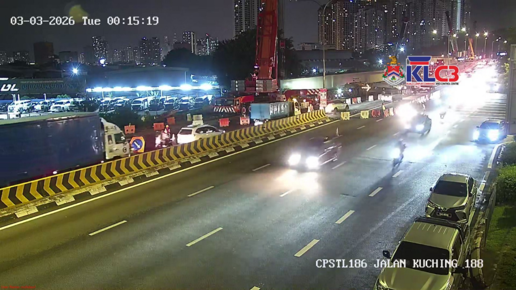 Jln Kuching: Kerja-kerja selenggara sebelum susur Jln Dutamas arah ke pusat bandar. 2 lorong kiri ditutup sementara, trafik perlahan.