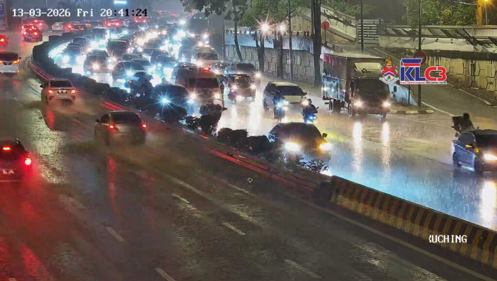 Aliran trafik tinggi, cuaca hujan dan air bertakung sekitar Pusat Bandar.
