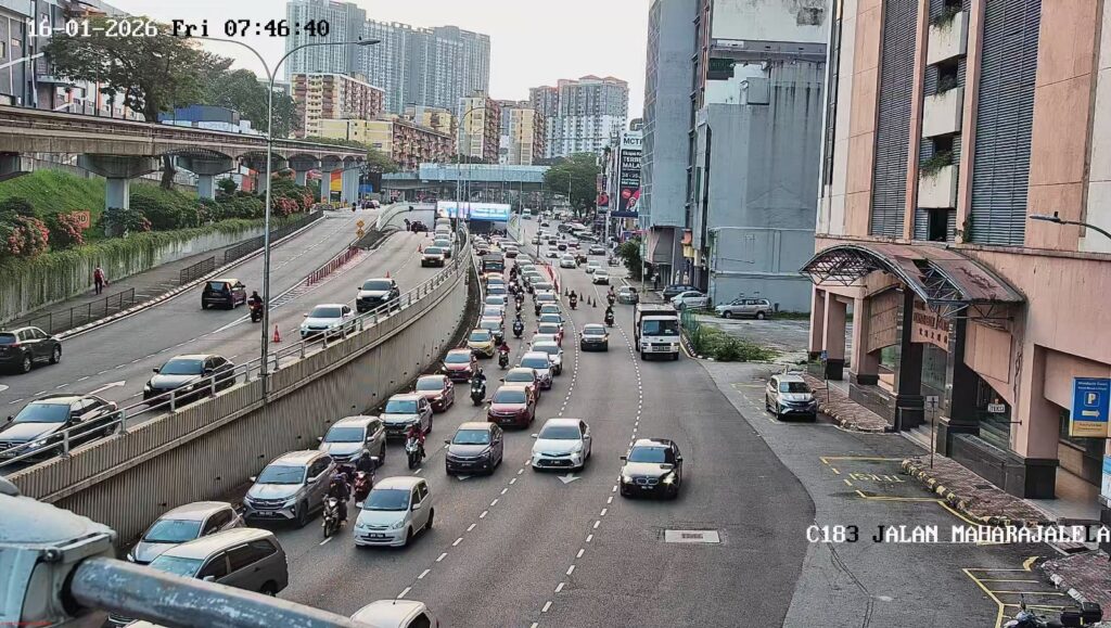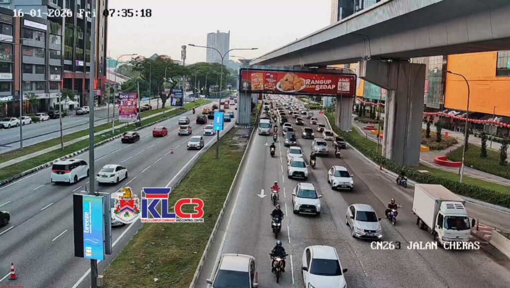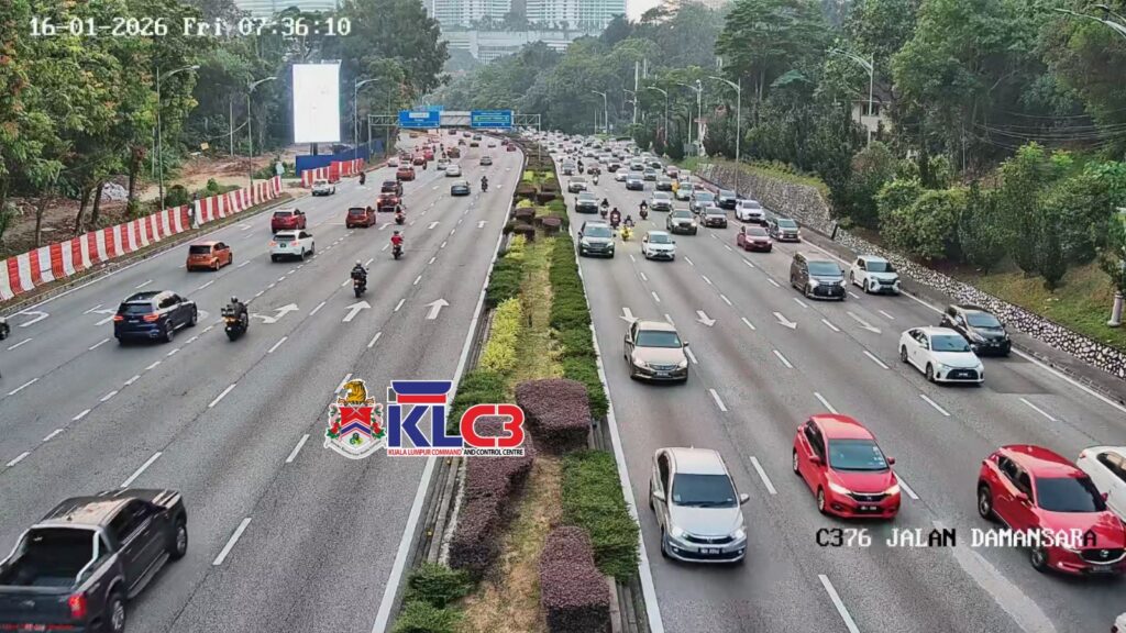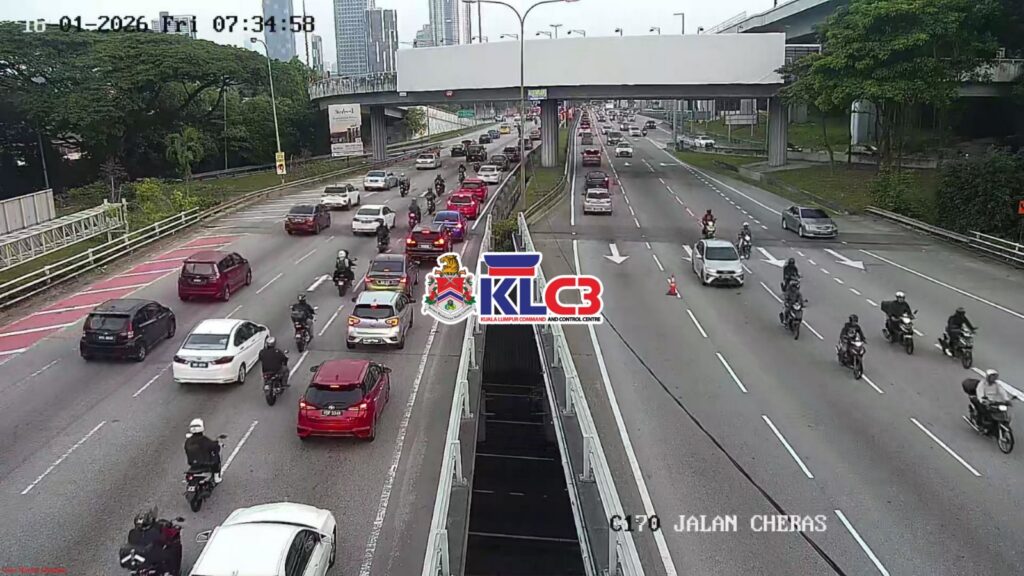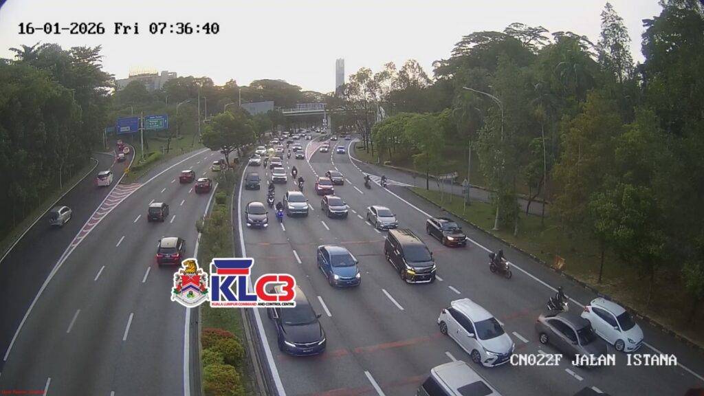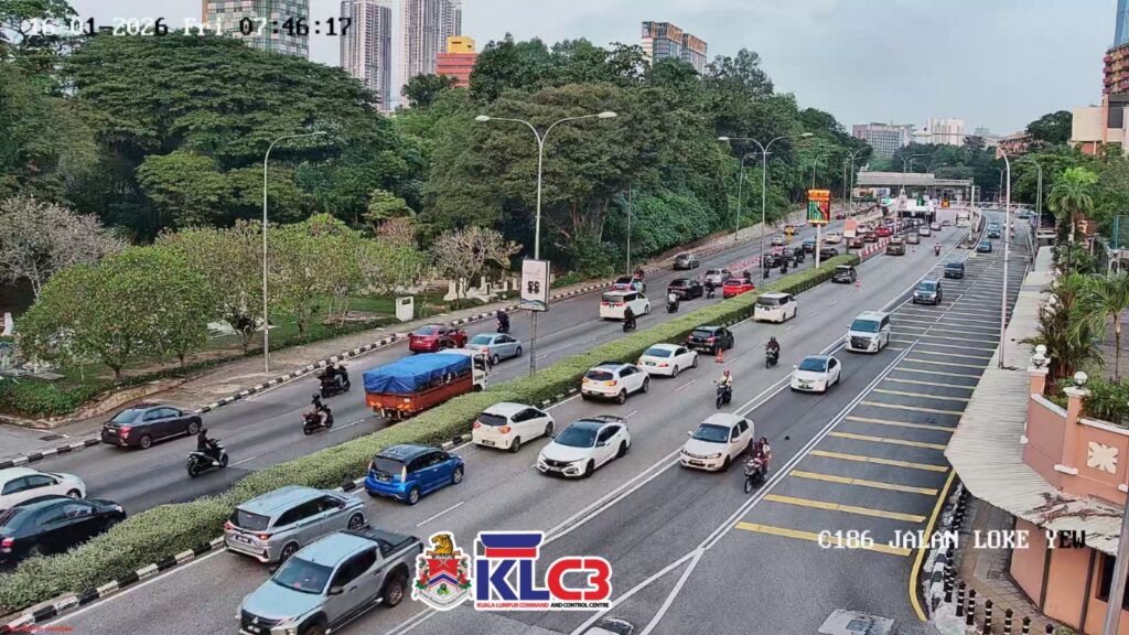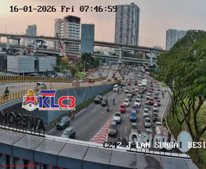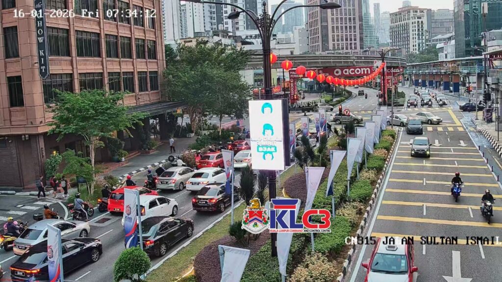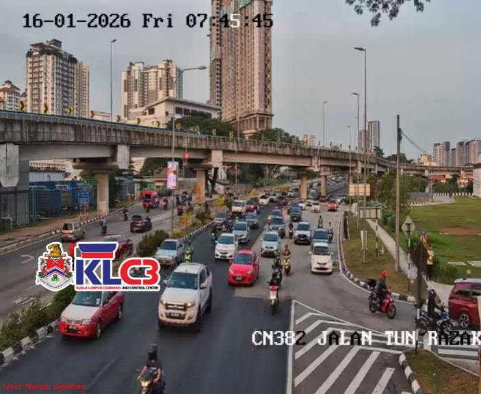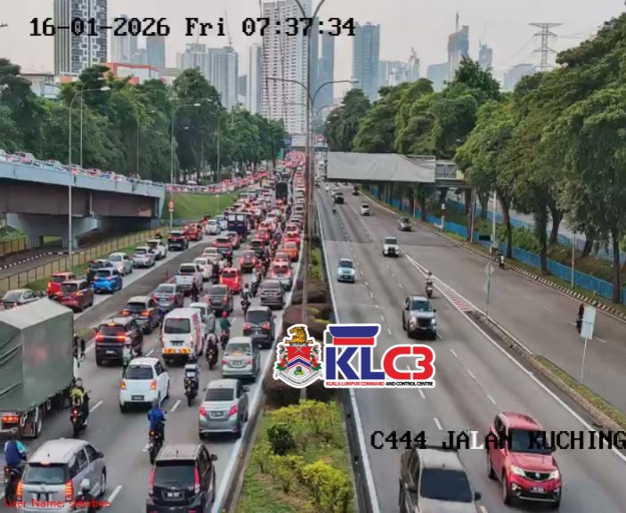 Aliran trafik perlahan, cuaca baik sekitar Pusat Bandar.
