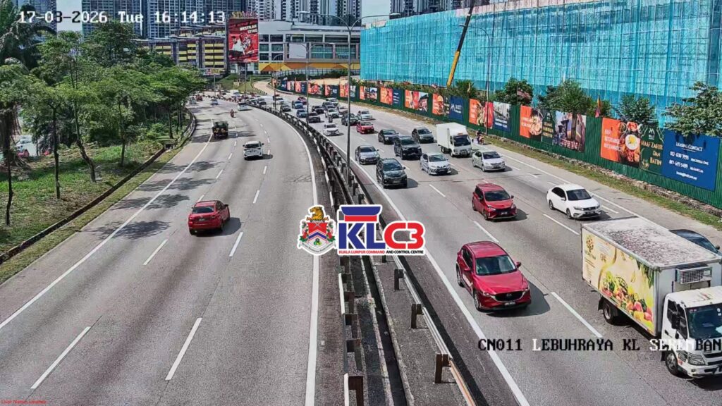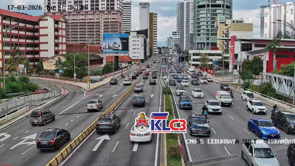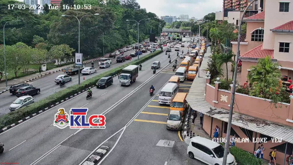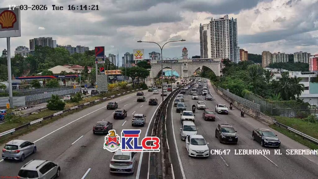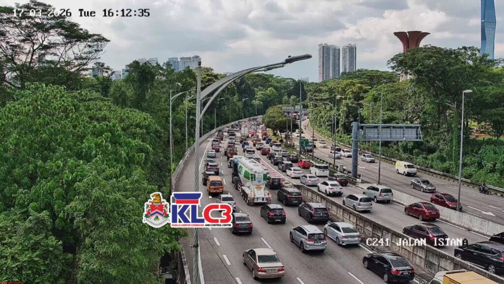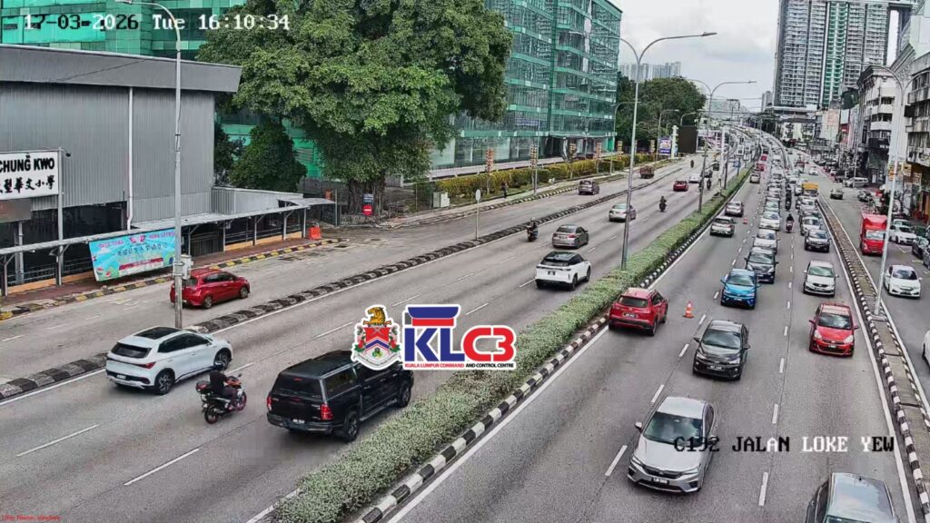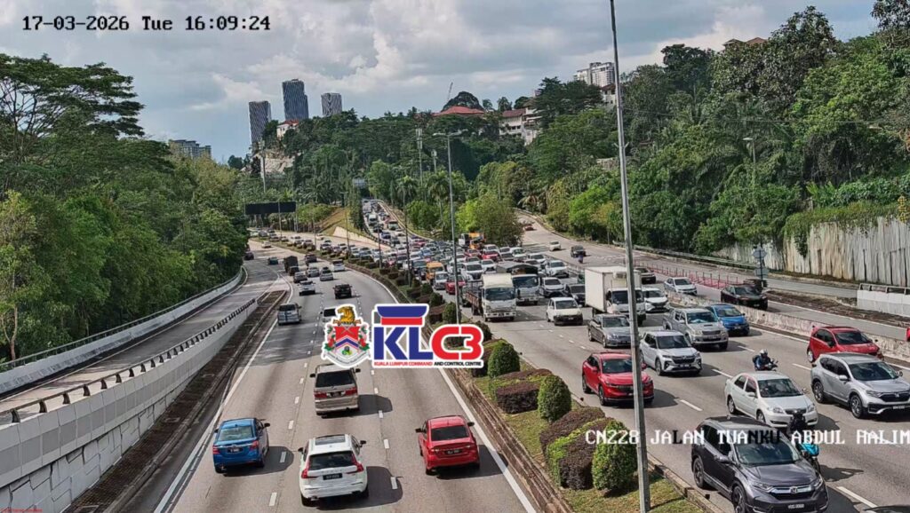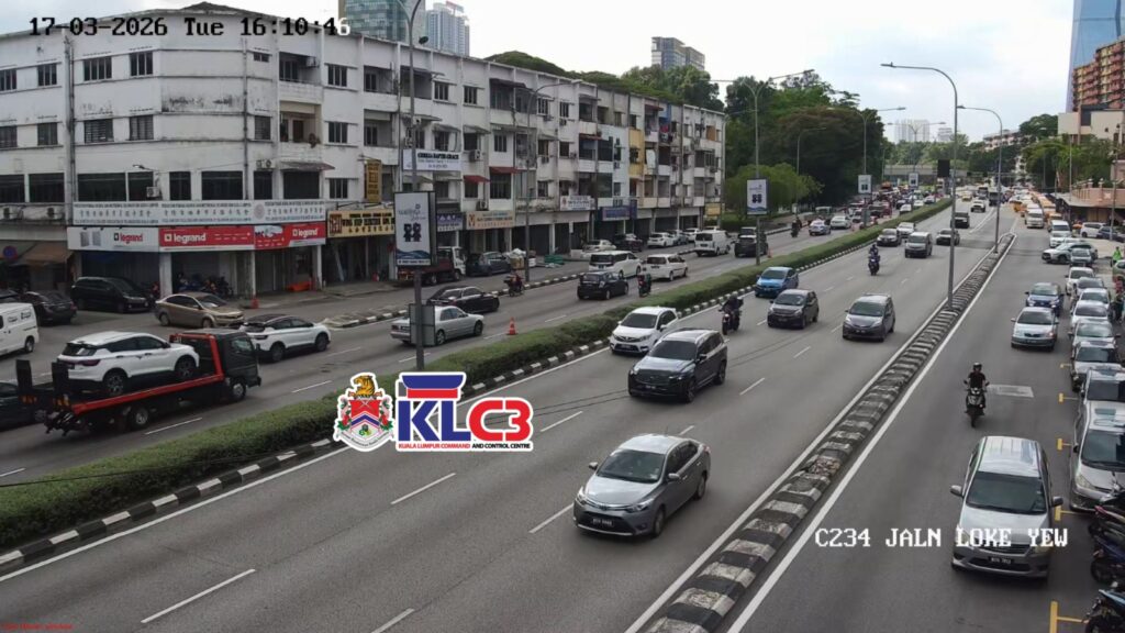 Aliran trafik tinggi, cuaca mendung sekitar Pusat Bandar.