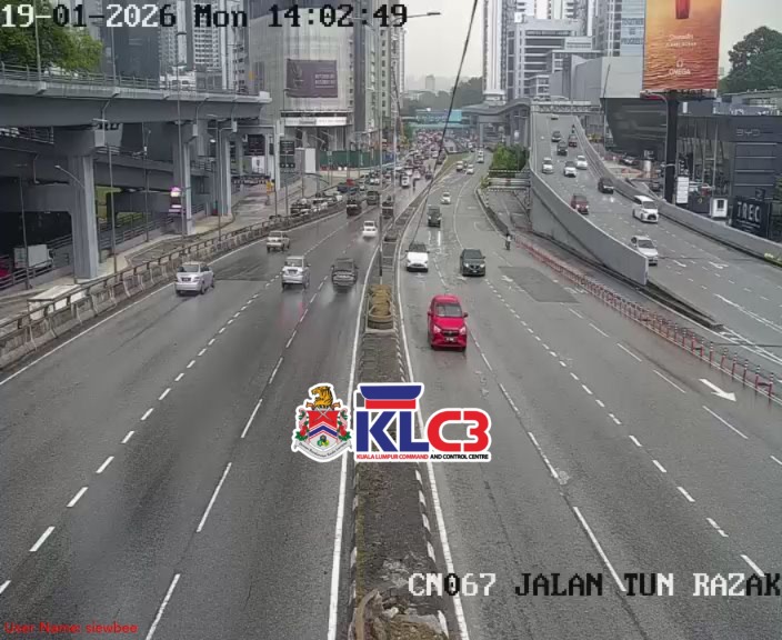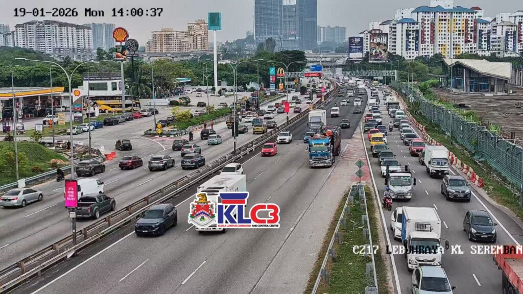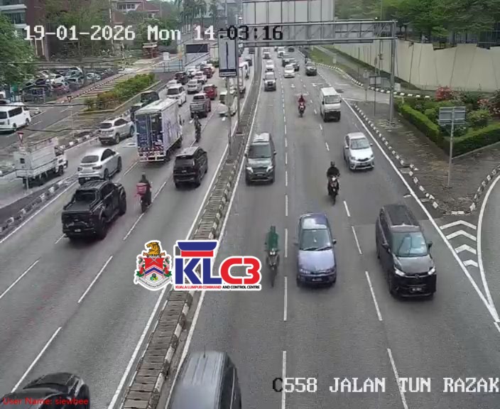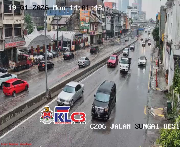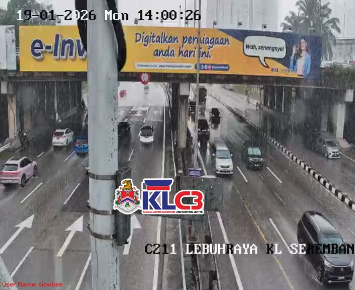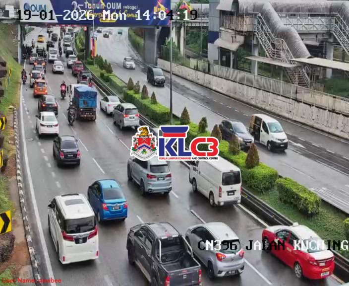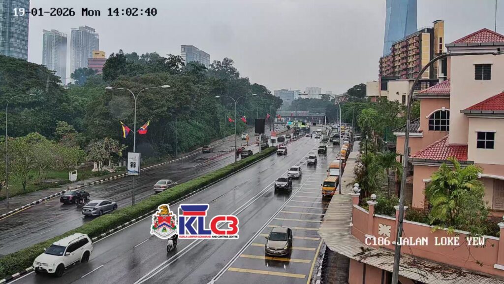 Aliran trafik masih terkawal, cuaca mendung dan hujan sekitar Pusat Bandar