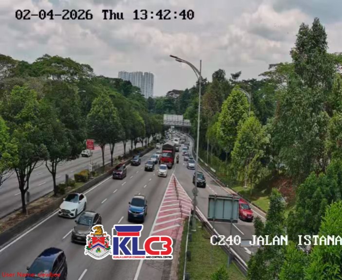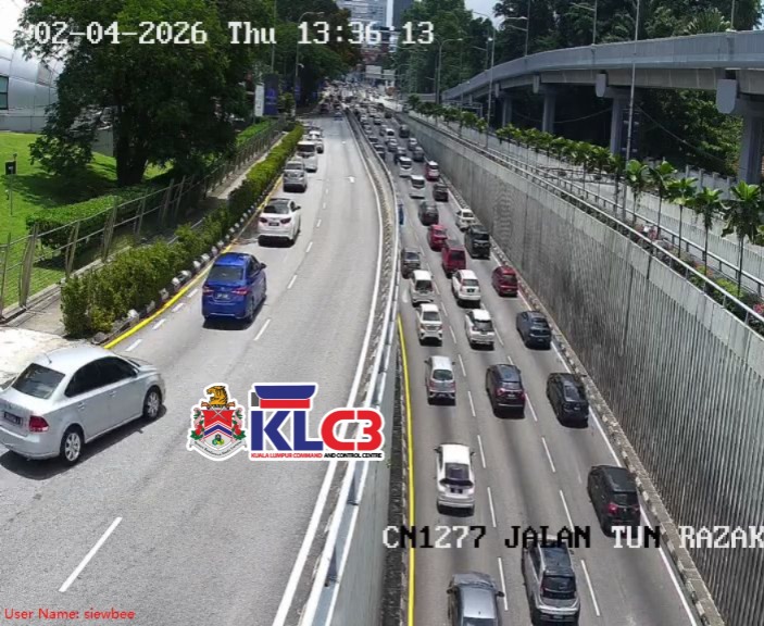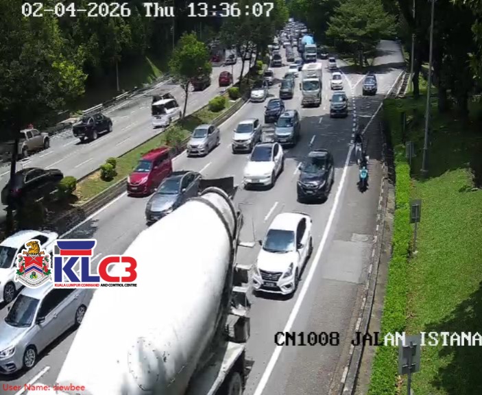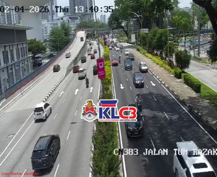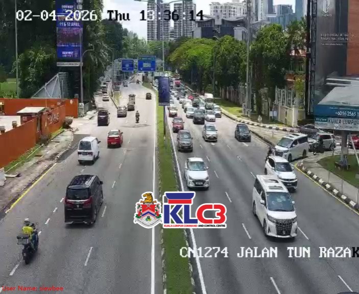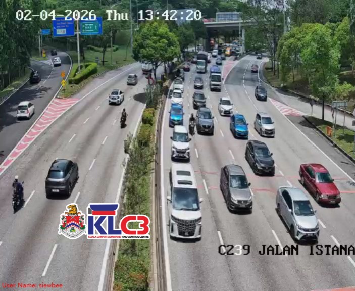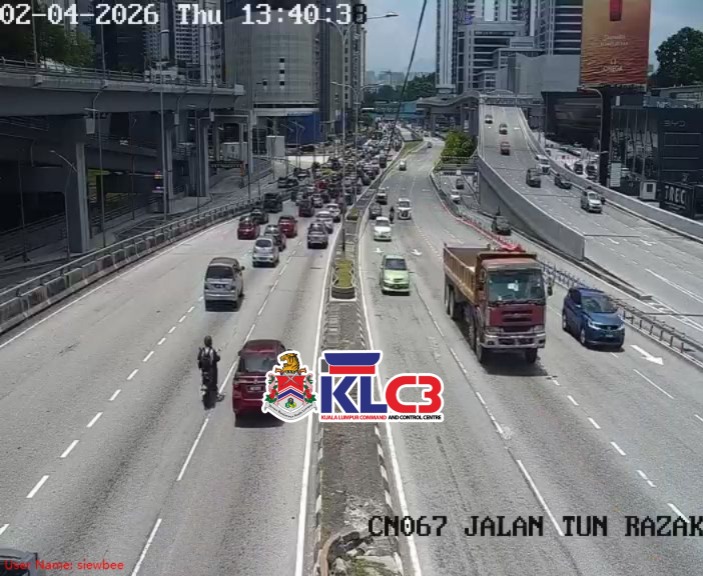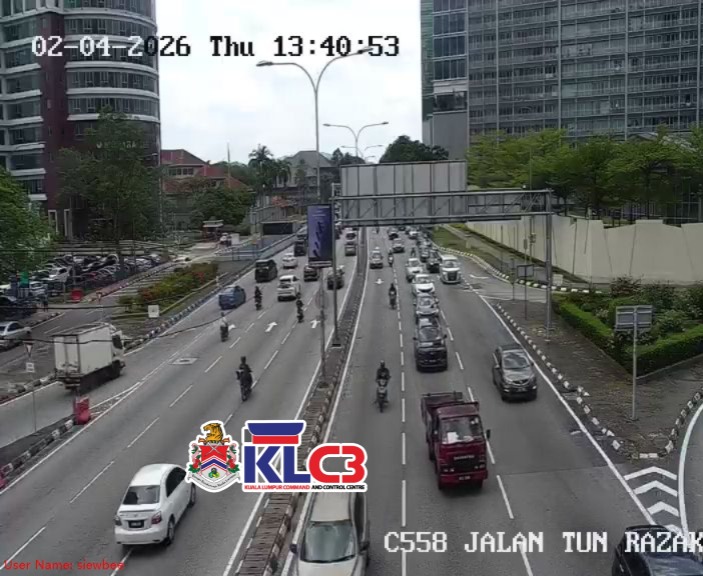 Aliran trafik perlahan, cuaca baik sekitar Pusat Bandar.