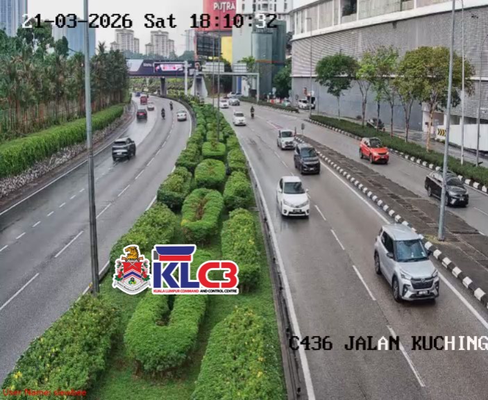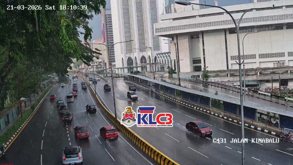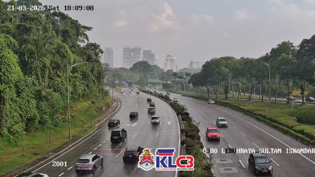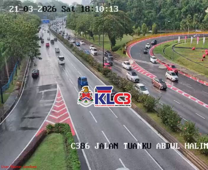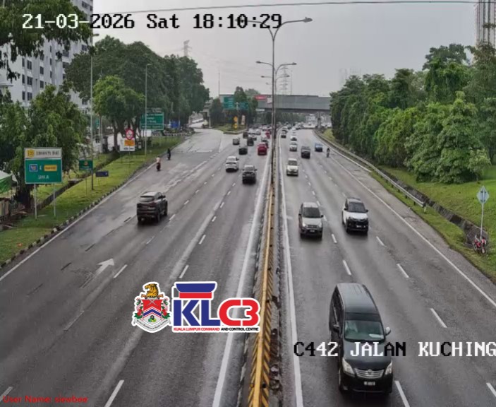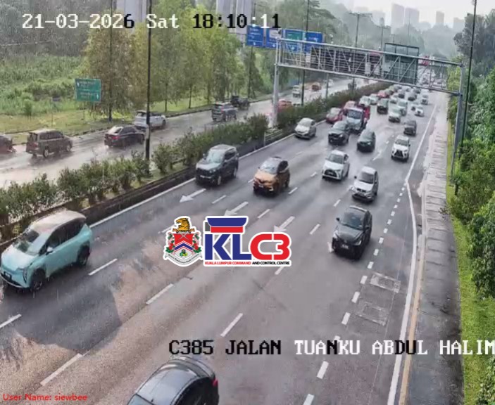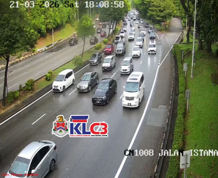 Aliran trafik masih terkawal, cuaca mendung dan hujan gerimis di beberapa lokasi sekitar Pusat Bandar.