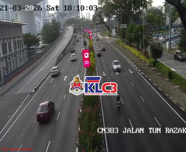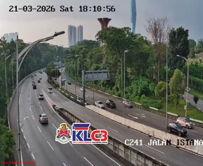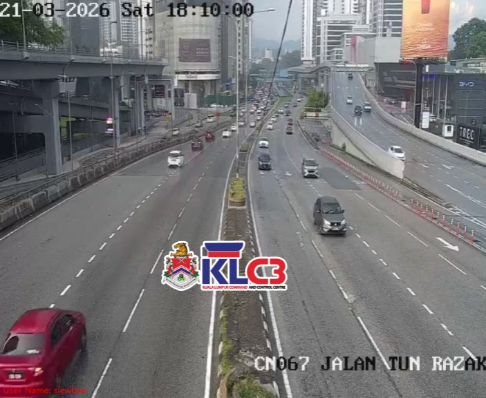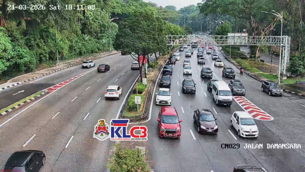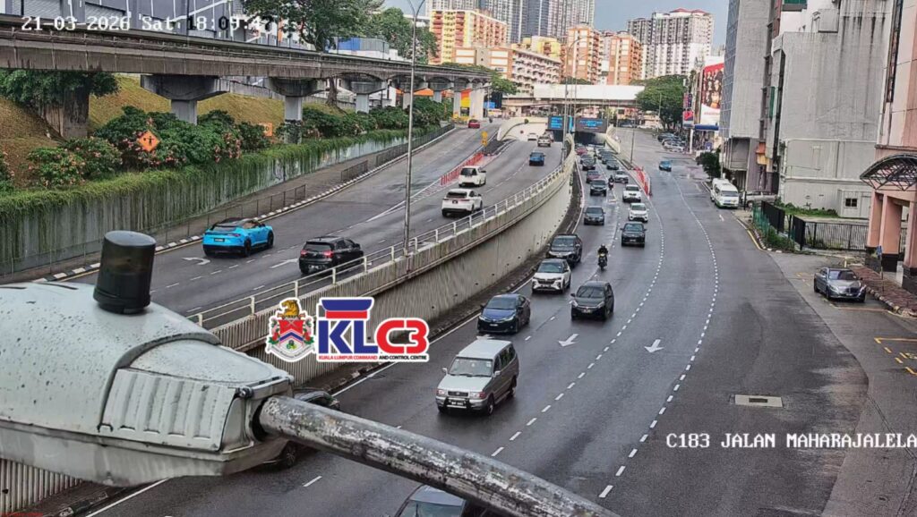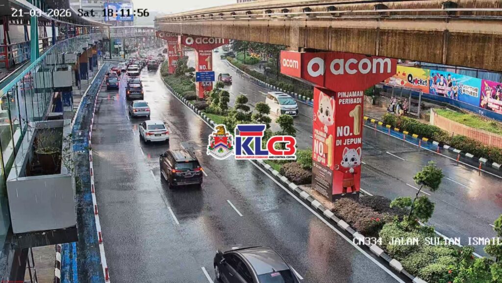 Aliran trafik masih terkawal, cuaca mendung dan hujan gerimis di beberapa lokasi sekitar Pusat Bandar.