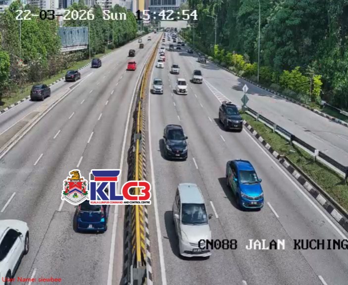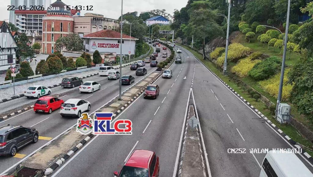 Aliran trafik baik dan terkawal, cuaca cerah di keseluruhan Pusat Bandar.