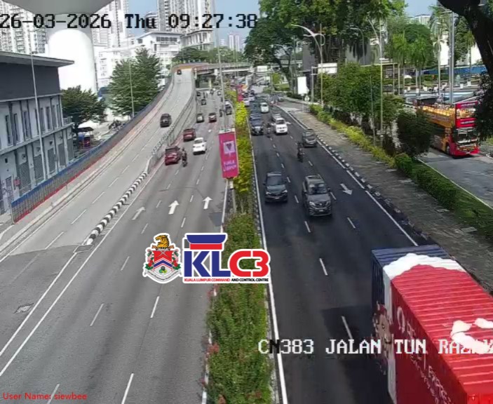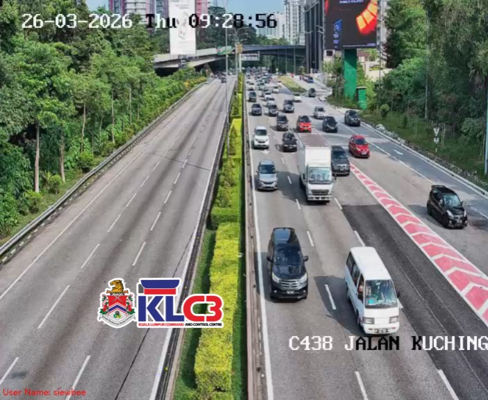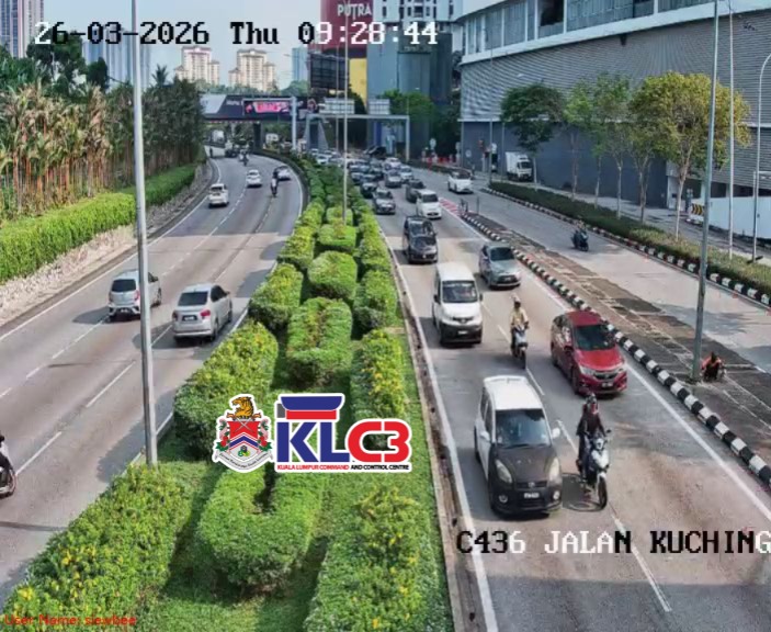 Aliran trafik perlahan, cuaca baik sekitar Pusat Bandar.