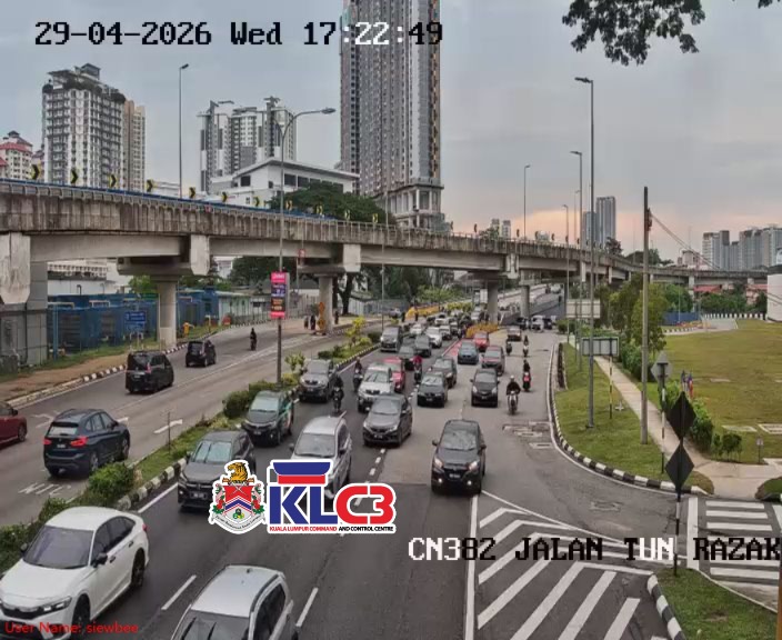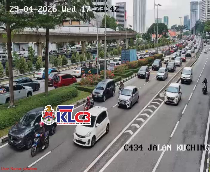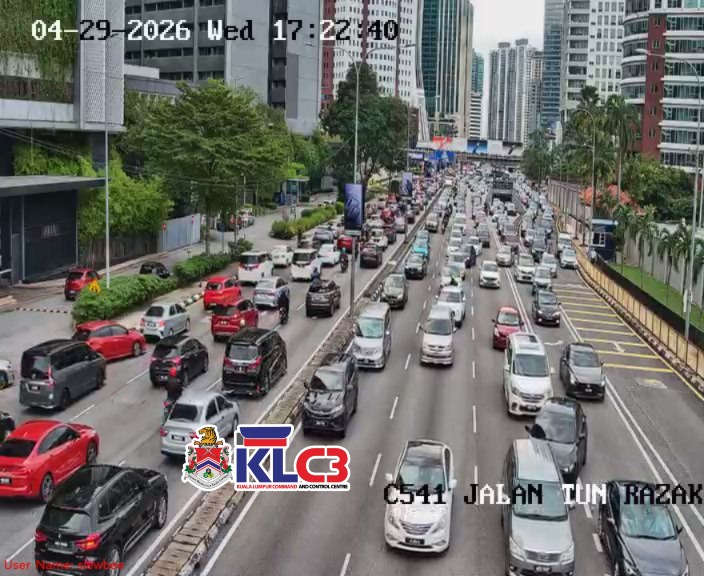 Aliran trafik tinggi, cuaca mendung dan hujan gerimis di beberapa lokasi sekitar Pusat Bandar. #