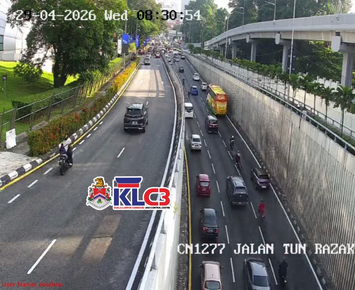 Aliran trafik tinggi, cuaca baik sekitar Pusat Bandar.