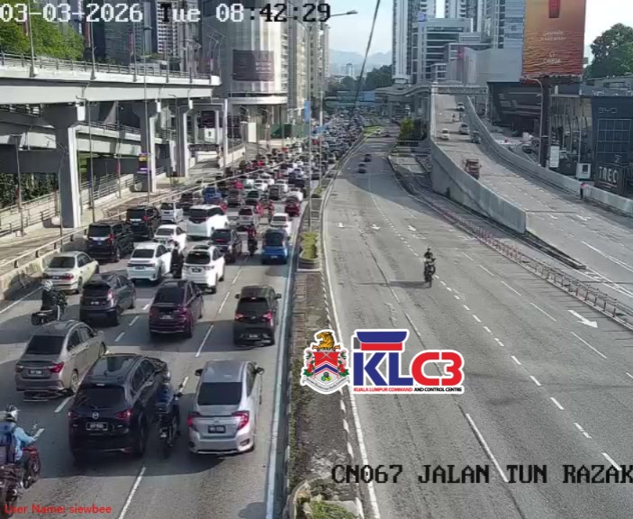 Aliran trafik tinggi, cuaca baik sekitar Pusat Bandar.