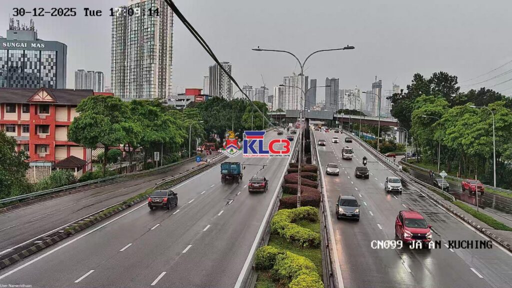 Aliran trafik tinggi, cuaca hujan sekitar Pusat Bandar.