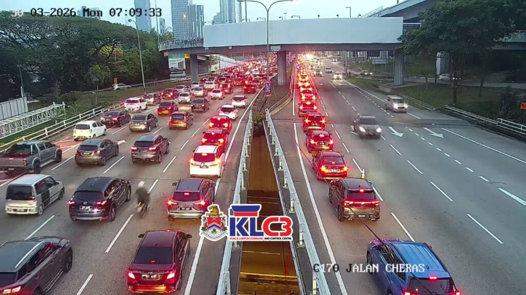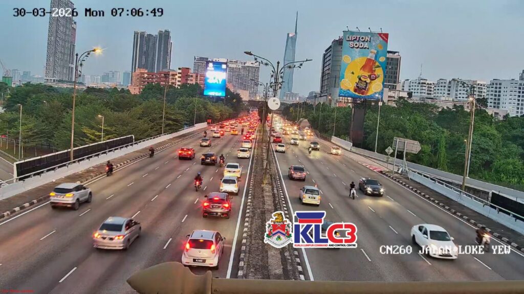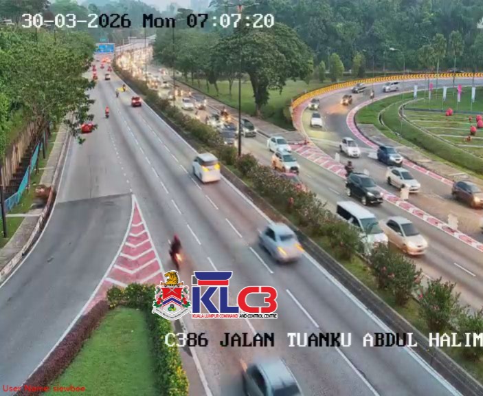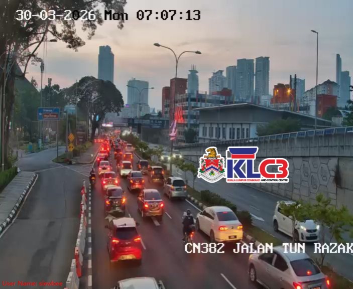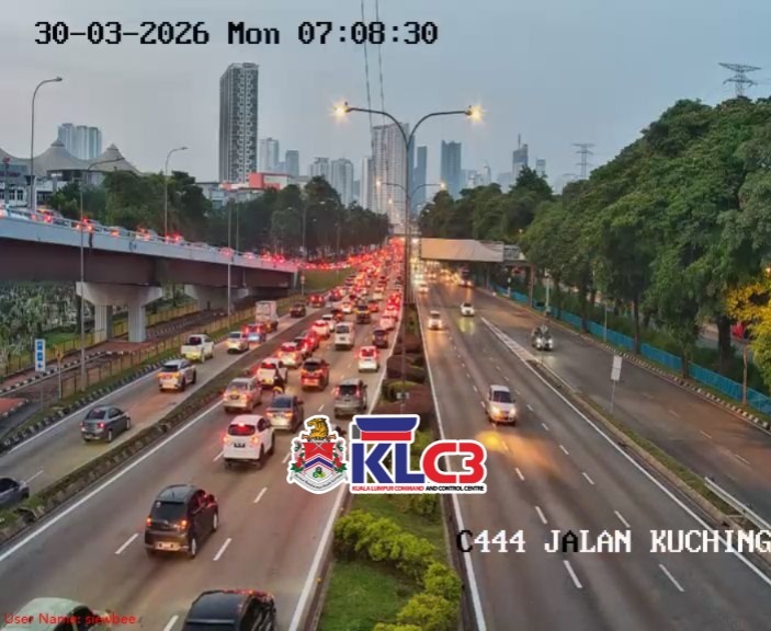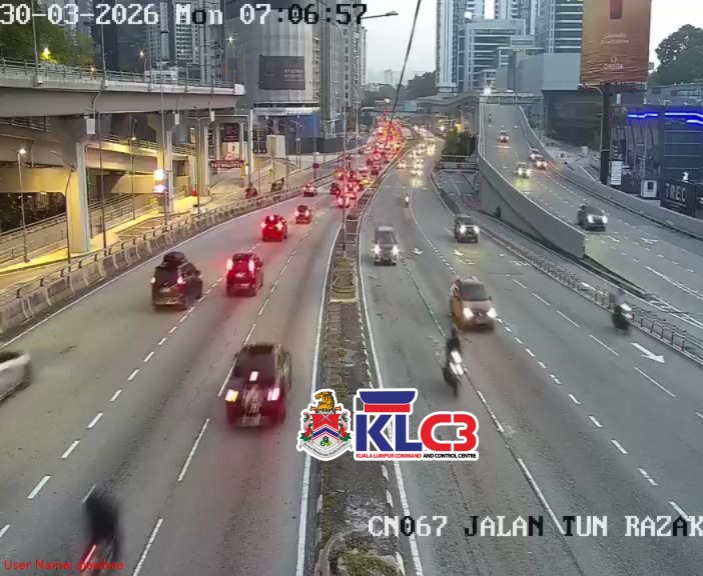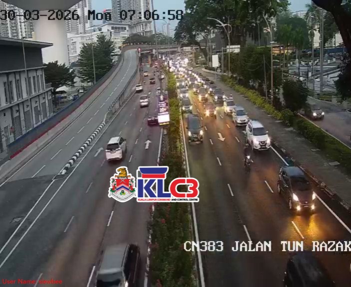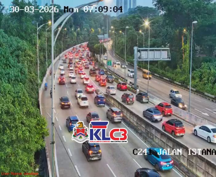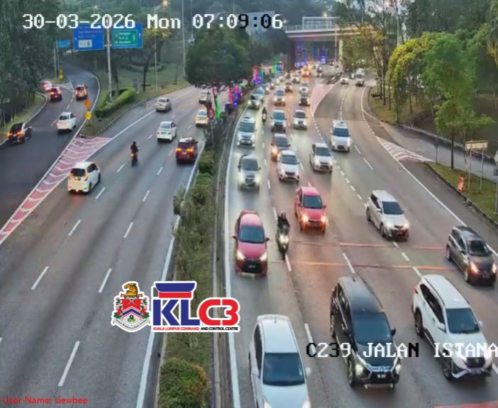 Aliran trafik tinggi, cuaca baik sekitar Pusat Bandar
