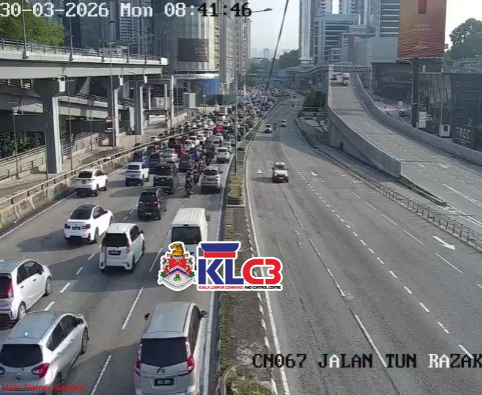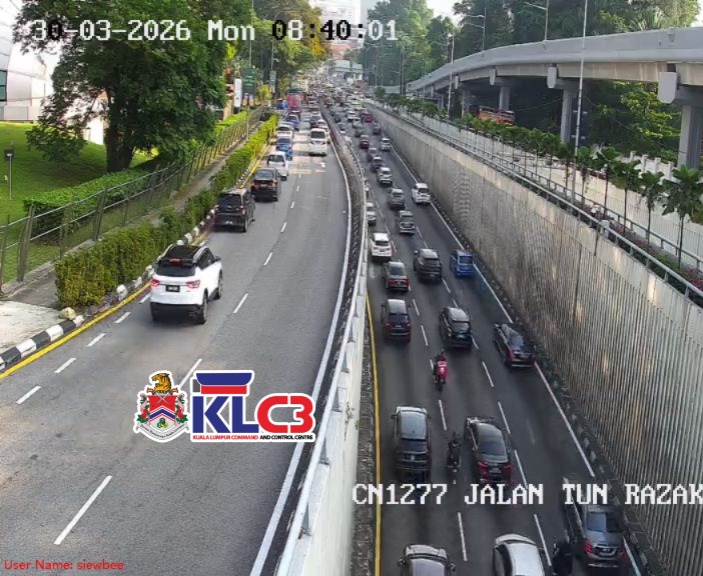 Aliran trafik tinggi, cuaca baik sekitar Pusat Bandar.