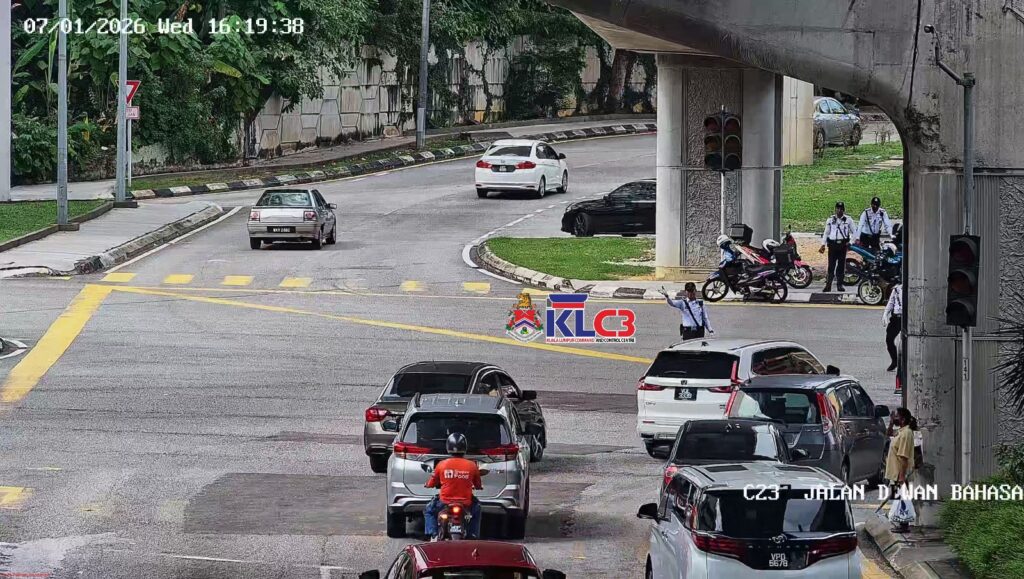 Anggota Polis Trafik membuat kawalan lalulintas di persimpangan Jalan Dewan Bahasa/Jalan Maharajalela/Jalan Hang Tuah.